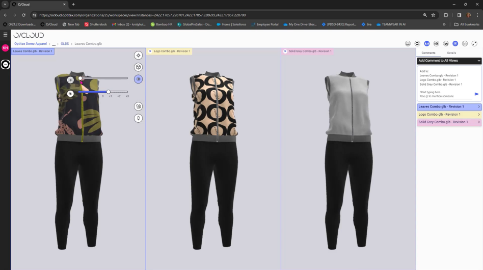 • View garments in side-by-side views, to compare sizes sets, fit and colorways