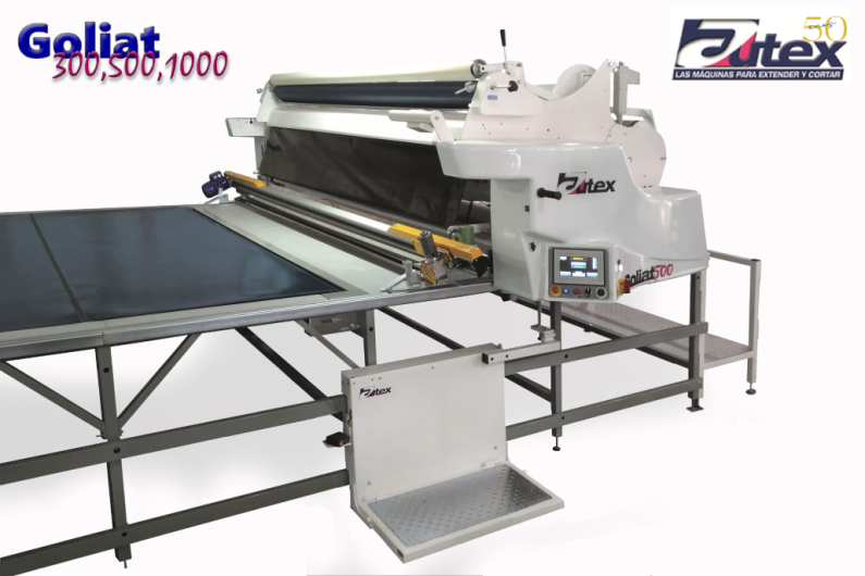 Autex Goliat is the automatic spreading machine for heavy rolls, with versions for 300kg, 500kg and 1000kg rolls. Supplied with a built-in “cradle”, a single