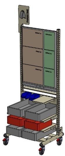 Communication supports, management supports, line input equipment, tools supports, scalable and agile storage, etc. (totems, trolley, conveyor).