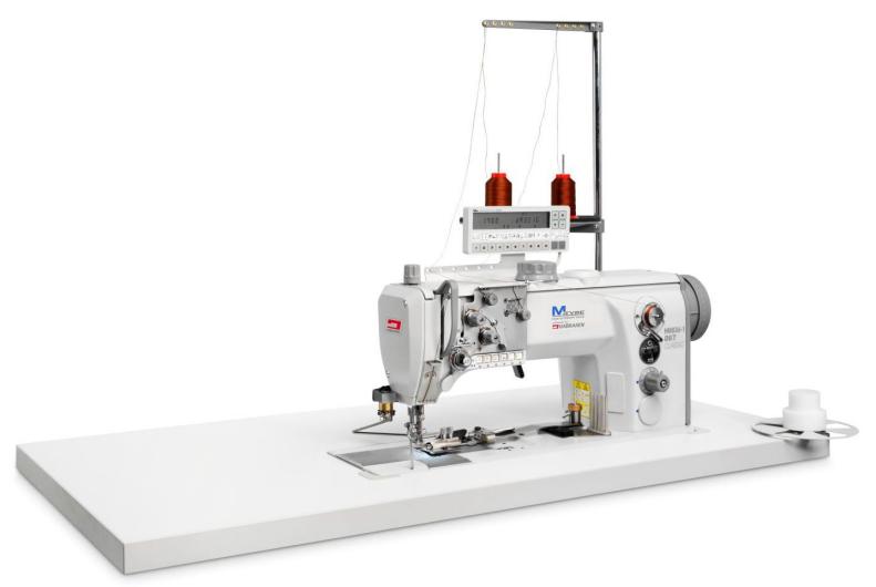 Based on Dürkopp Adler’s M-type flat-bed machine range, the HM830 can be delivered both as a single- and double needle version with an XL or XXL hook system. The activation of the differential binder system can be done via a designated push button on the machine head or via a knee switch underneath the table. We recommend however to use the optional HM-MEF mechanical edge follower.